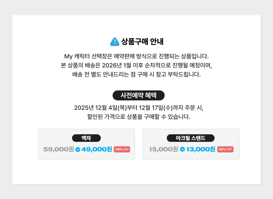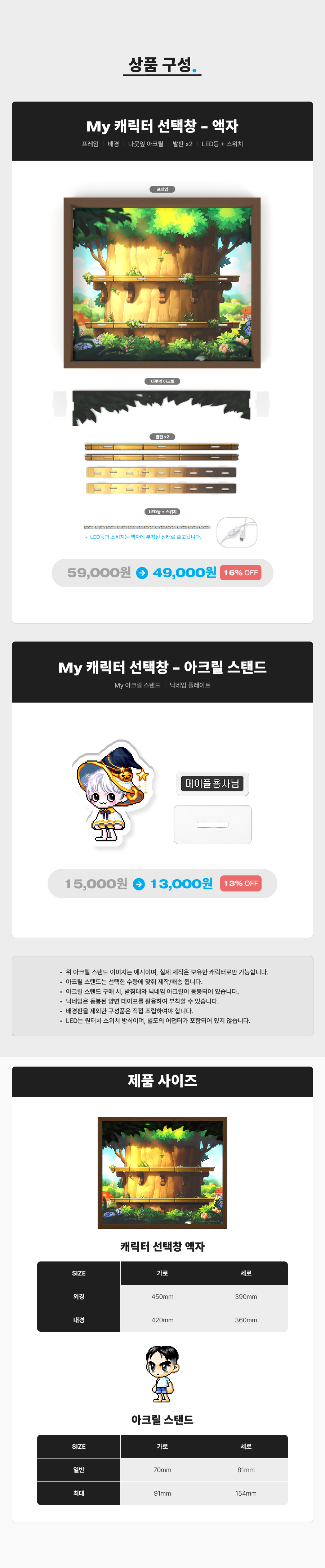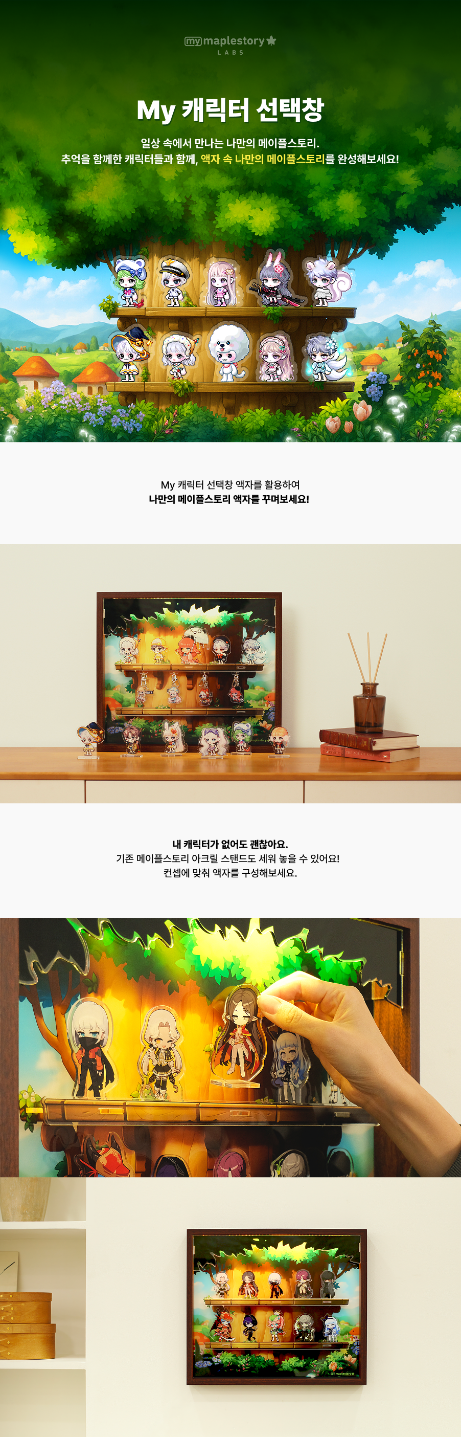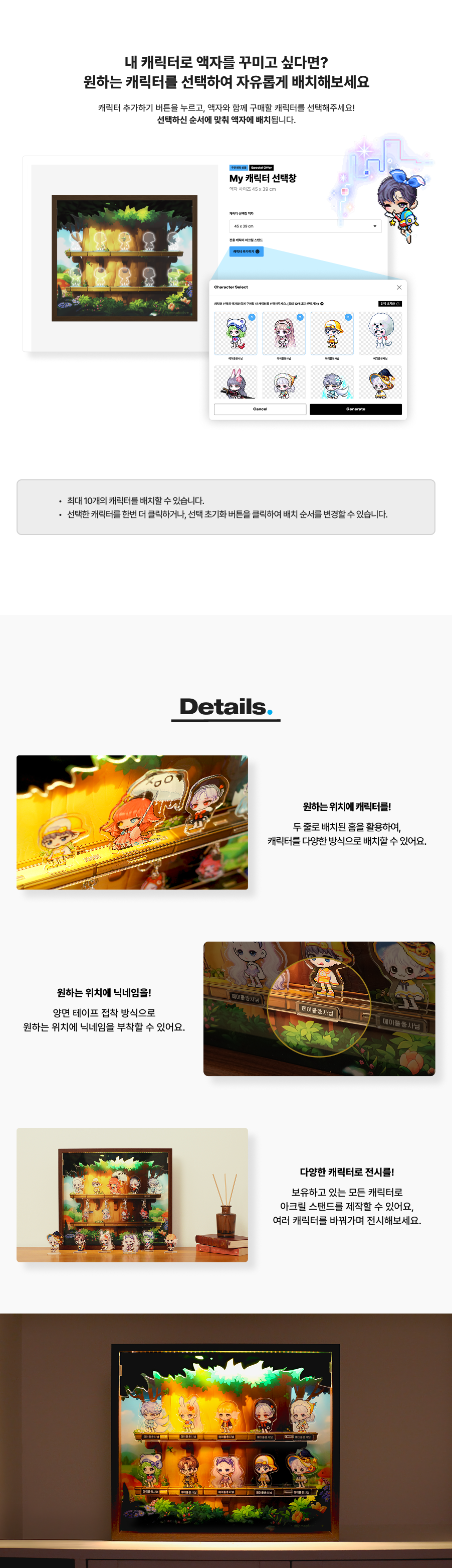 전용 캐릭터 아크릴 스탠드와 조립할 수 있는 액자입니다.