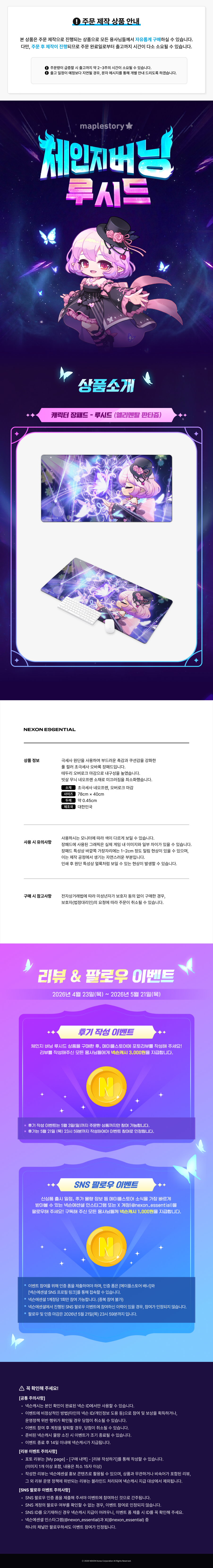 ※ 넥슨에센셜은 사용하는 상품만 생산함으로써 낭비없는 생산으로 자원의 낭비를 막고 환경을 생각합니다. 신중한 구매 부탁드립니다.